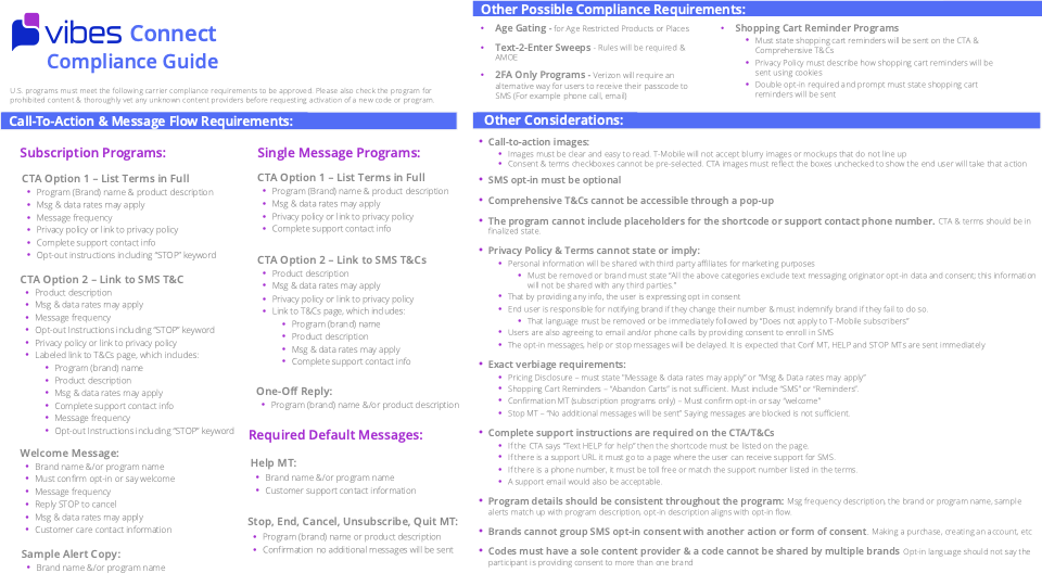 VIBES CONNECT ONE-SHEET COMPLIANCE GUIDE