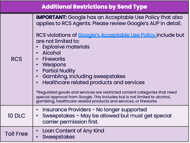 Google's Acceptable Use Policy- Google's AUP applies to all RCS programs